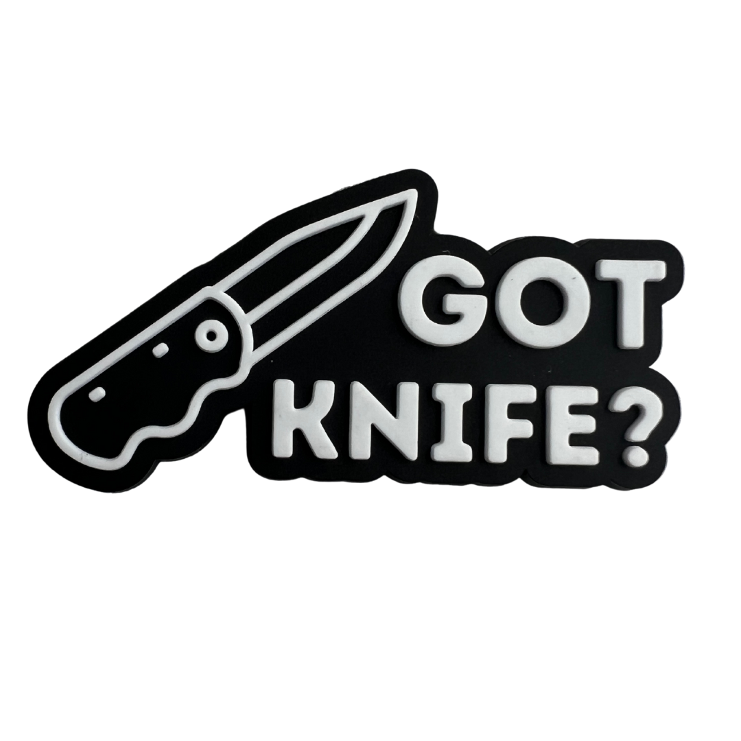 Not only is this patch visually appealing, but it's also incredibly versatile. 'Got Knife?' can be easily attached to your favorite pouch, backpack, or any other accessory you desire. The hook-and-loop backing ensures a secure and hassle-free attachment, allowing you to showcase your style effortlessly.